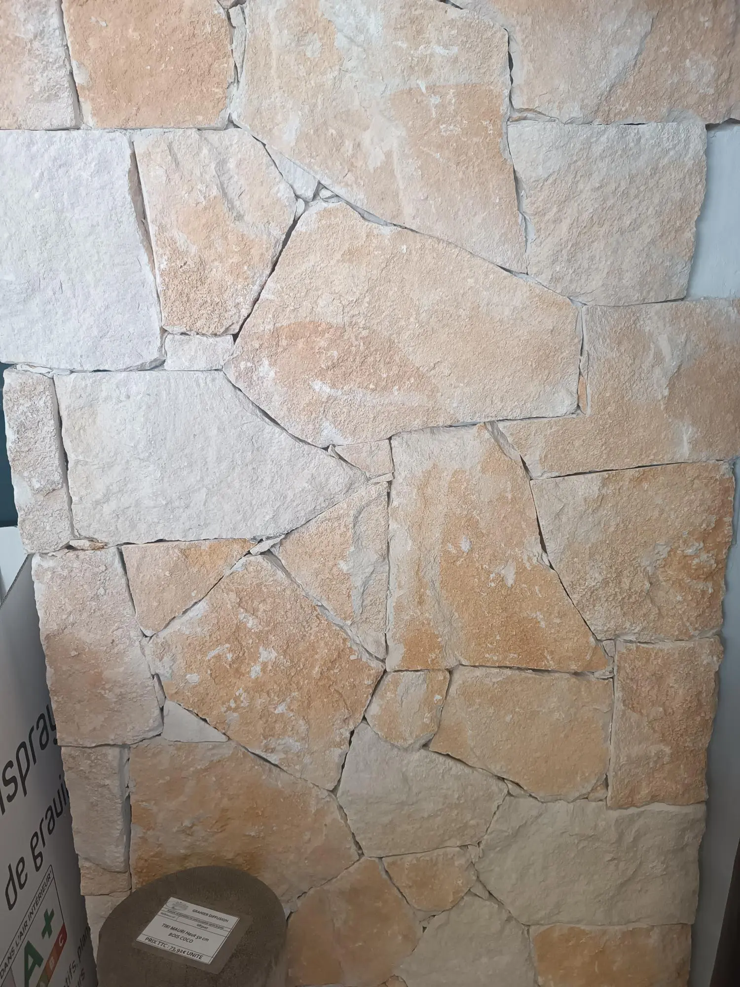 Si < 1m2 = compté pour 1m2. Parement mural en pierre naturelle, mur en pierre face naturelle aux couleurs beige, ocre nuancées.